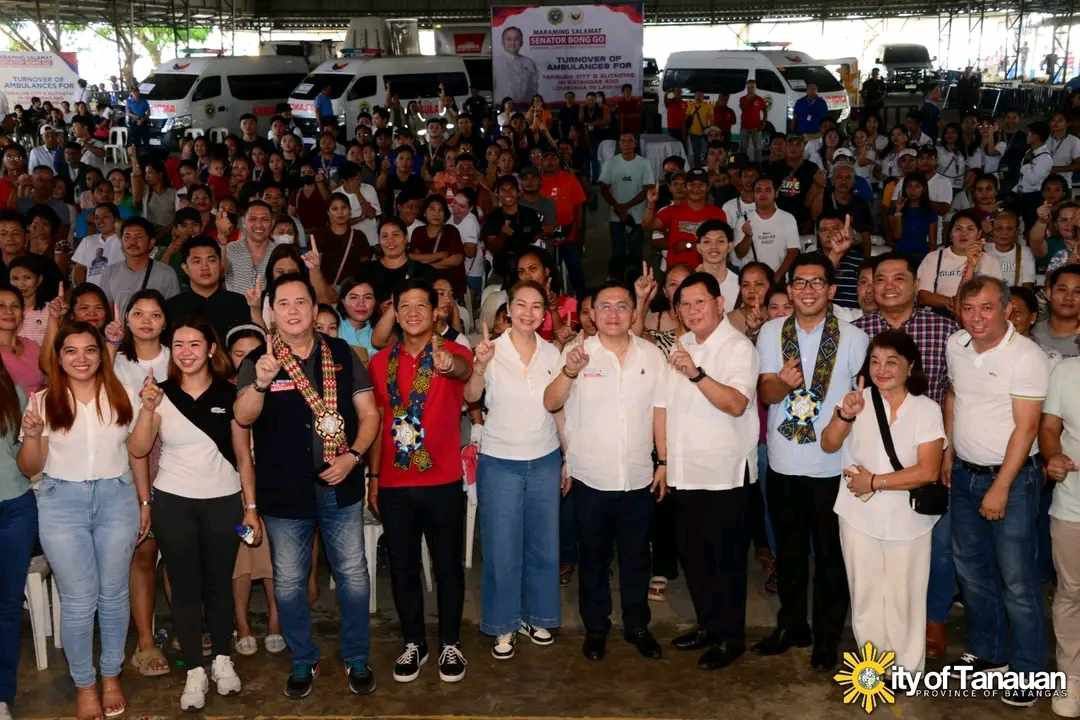 Nag-uumapaw ang biyayang natanggap ng mga Tanaueño matapos bumisita si Sen. Bong Go upang personal na iabot kina Mayor Sonny Perez Collantes, Congresswoman Ma. Theresa “Maitet” V. Collantes at buong Sangguniang Panlungsod ang bagong ambulansya, grocery packs, DOLE TUPAD para sa Lungsod ng Tanauan.